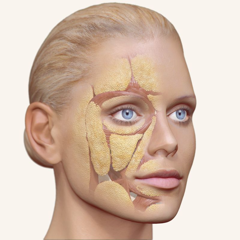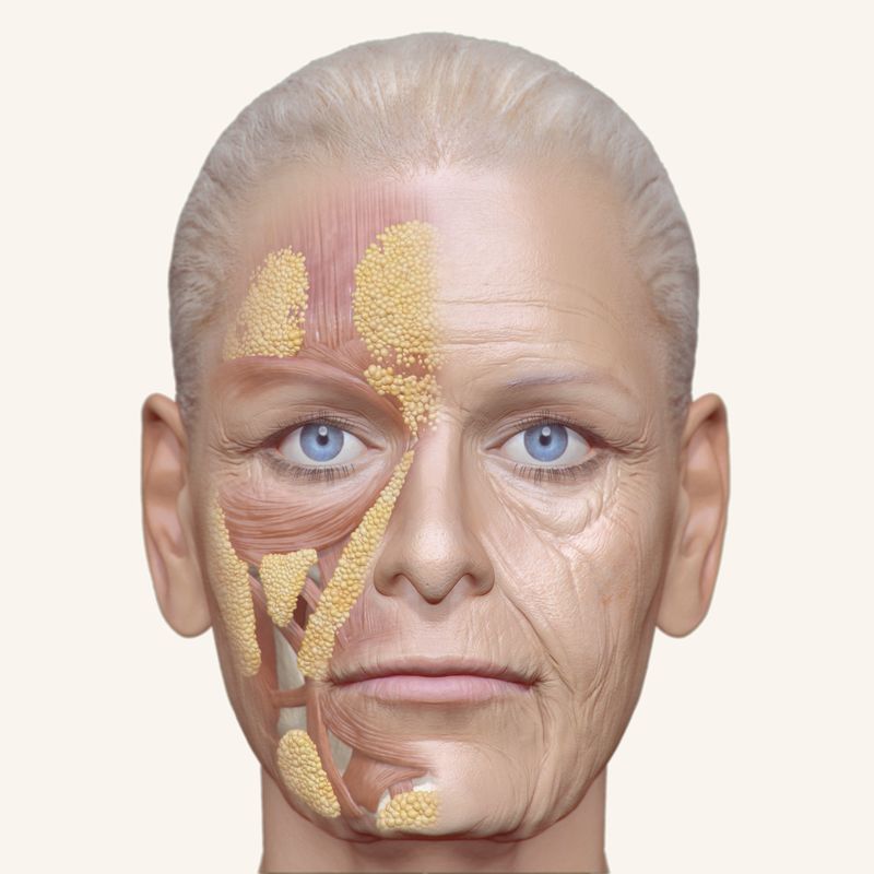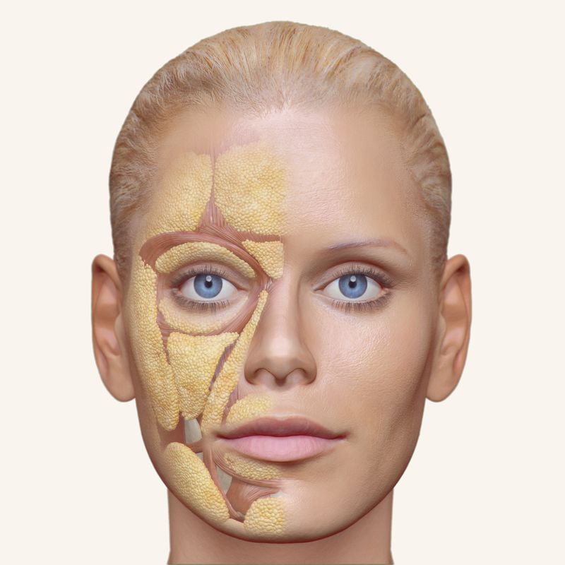 - Facial Fat: Over time, the fat pads that sit under the skin and give the face a soft, youthful contour start to thin out and descend, leading to hollowing in areas like the cheeks and temples.